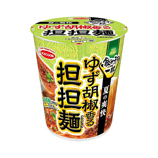 Smooth, white-colored, thin somen noodles. Japanese-style soup with a refreshing flavor of dried bonito, kelp and shiitake mushrooms, and yuzu citrus. A fried egg with red ginger, a colorful egg, and green onions are added.