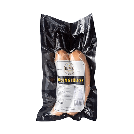 Double the indulgence with Aguila Gourmet Sausage Bacon and Cheese—a premium sausage blend that combines smoky bacon bits and creamy cheese for a rich, meaty bite.