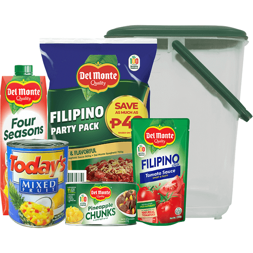 - Del Monte Filipino Style | 900g + 700g Pasta - Del Monte Four Seasons Juice Drink | 1L - Today's Mixed Fruit Cocktail | 836g - Del Monte Pineapple Chunks | 227g - Del Monte Tomato Sauce Filipino Style | 250g
