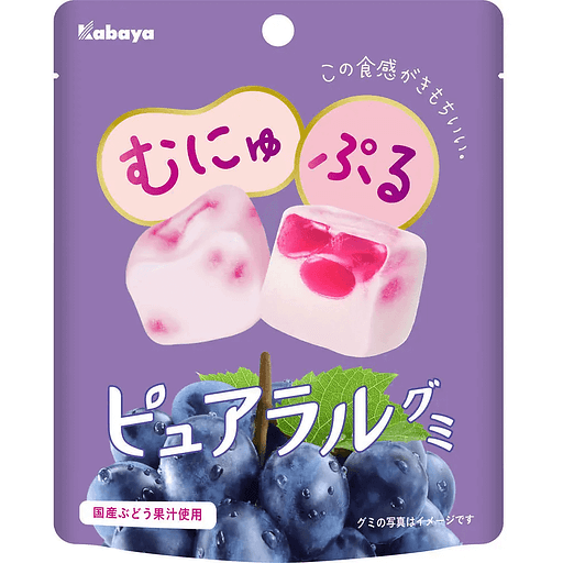 Kabaya Pure & Natural Gummy Grape are soft, airy gummies with ripe grape flavor. The unique texture is achieved by adding marmalade based on natural juice. The taste spreads gently over the mouth, starting with a bright and juicy grape aroma and leaving a soft aftertaste.