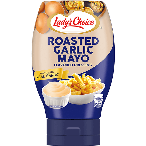 Lady's Choice Flavored Mayo offers exciting new flavors that are great for cooking & dipping. Combines the #1 LC Mayo that you love and the indulgent flavor of roasted garlic for a perfect 2-in-1 blend of flavors in one bottle. Made with 100% farm-fresh eggs and real quality ingredients.