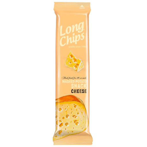 Long cheese-flavored chips of 75g. Long and thin chips, with an intense and tasty cheese flavor.