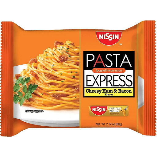 Enjoy the good vibes of Nissin Pasta Express with the family. In just 4 minutes you can have the delicious Cheesy Ham and Bacon flavor spaghetti with lots of meat-like bits. Enjoy its straight pasta goodness thanks to Nissin's straight nodle technology. For real fast pasta, get it straight get Nissin Pasta Express!