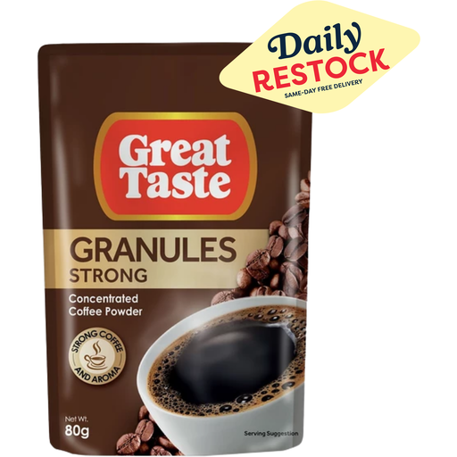 Experience the rich, full-bodied taste of Great Taste Coffee Granules (Strong)—a premium instant coffee blend crafted for those who crave a bolder, more intense brew. Made with high-quality coffee granules, this blend delivers a deep, aromatic flavor with every sip. Simply mix with hot water, stir, and enjoy a strong and energizing cup anytime you need a boost.
