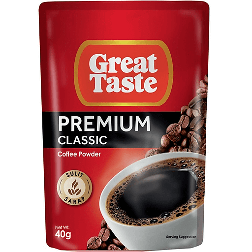 Great Taste Premium is a 100% pure instant coffee made with Robusta beans. This type of bean is known for its stronger and bolder flavor compared to Arabica beans.