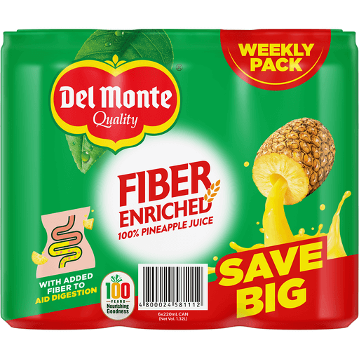 Del Monte 100% Pineapple Juice Fiber-Enriched | 220ml x 6s
