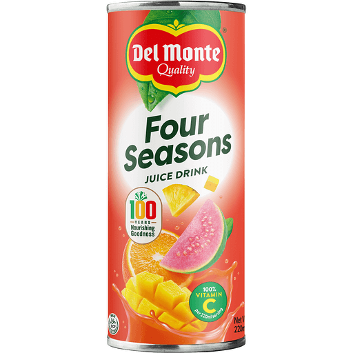 Del Monte Four Seasons Juice Drink brings the delicious taste of the refreshing fruity goodness of four seasons. This is made from real juice and is a refreshing source of 100% Vitamin C. Every sip makes it a perfect pair for every meal.