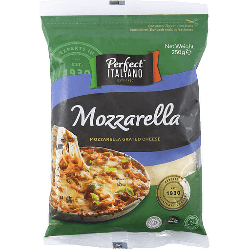 Our Perfect Italiano Mozzarella melts beautifully, giving you a delicious cheesy stretch, perfect for your lasagne’s or cannelloni’s. Grated for your convenience.