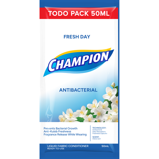 **- Previously Named Champion Liquid Fabric Conditioner Fresh Day 50ml** - One rinse formula - Quickly remove suds in a single rinse