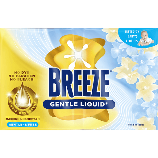 Breeze Gentle and Free Liquid Detergent is specially designed to remove tough stains with a gentle formulation that is safe for babies and sensitive skin. The gentle formulation contains no dye, no paraben, and no bleach for a tender clean for your baby or sensitive skin.