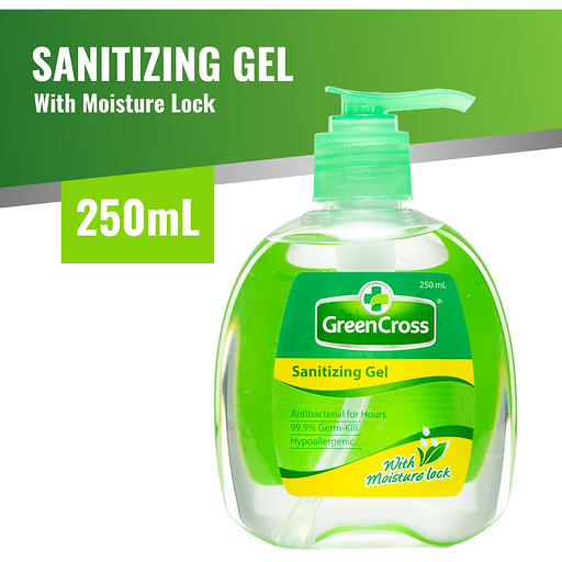 Green Cross Sanitizing Gel has a Triple Acting System that provides antibacterial protection for hours, immediately kills 99.9% of germs, and nourishes skin with its moisture-lock formula. It is hypoallergenic and dermatologist-tested safe even for kids. Green Cross Sanitizing Gel is non-sticky and lightly scented.