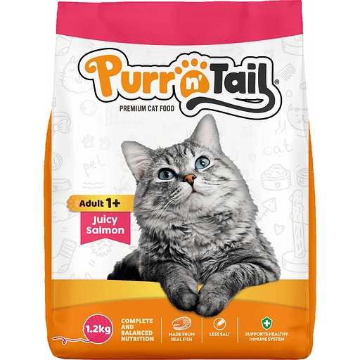 Purr n' Tail Juicy Salmon-expertly formulated to provide essential nutrients for your cat. Suitable for all breeds aged 1 year and older.