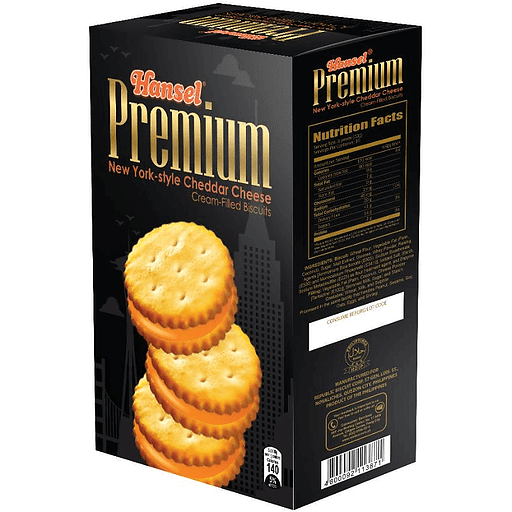 Soft-crunch Cheddar-flavored cookie sandwiches inspired by New York made for your premium taste. Enter a world of premium with a box of Hansel Premium Sandwiches.