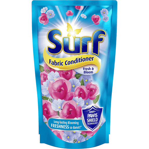 Surf Fabric Conditioner Fresh & Bloom is designed to keep clothes fresh and blooming for up to 12 hours. It features 3x Amoy-Pawis Shield Technology, which protects clothes from unpleasant sweat odors, especially during hot weather or after intense activities. This fabric conditioner also includes Melcap technology, which encapsulates a blooming fresh fragrance that is released gradually through movement or rubbing action