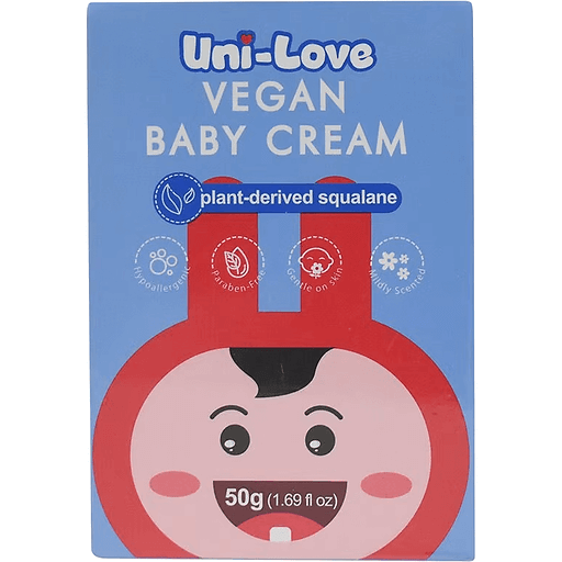 Uni-love Vegan Baby Cream (50g) moisturizes your baby's skin. With its plant-derived squalane, it helps prevent the skin from drying for up to 12 hours a day.